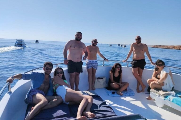 Embark on an unforgettable Ras Mohamed & White Island Boat Trip from Sharm El Sheikh and explore the crystal-clear waters of the Red Sea. Discover Ras Mohamed National Park, famous for its colorful coral reefs, rich marine life, and breathtaking underwater scenery. Your journey starts with hotel pickup and transfer to the marina, where you’ll board a modern, fully equipped yacht. Sail along the stunning Sinai coastline while relaxing on deck and learning about the area’s unique marine ecosystem from our experienced guides. Enjoy two amazing snorkeling stops at Ras Mohamed’s top reef sites and the iconic White Island. Swim among tropical fish, admire vibrant corals, and enjoy a tasty onboard lunch with soft drinks before returning to your hotel with unforgettable memories.